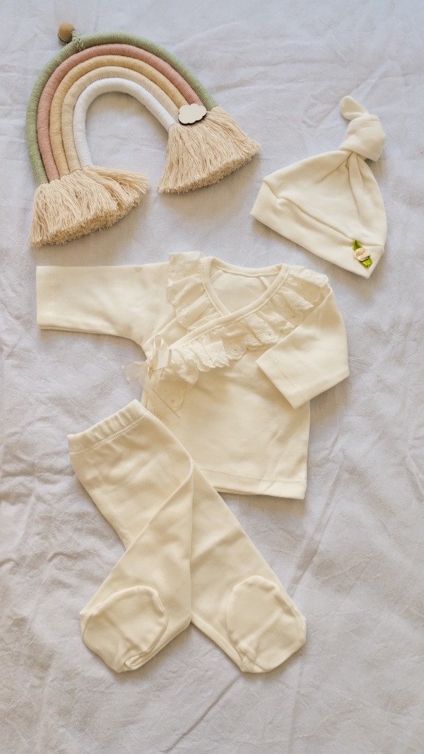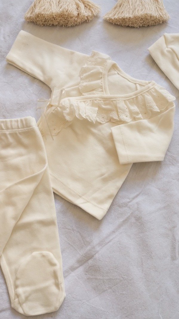Ajuar de algodón peinado compuesto por tres piezas